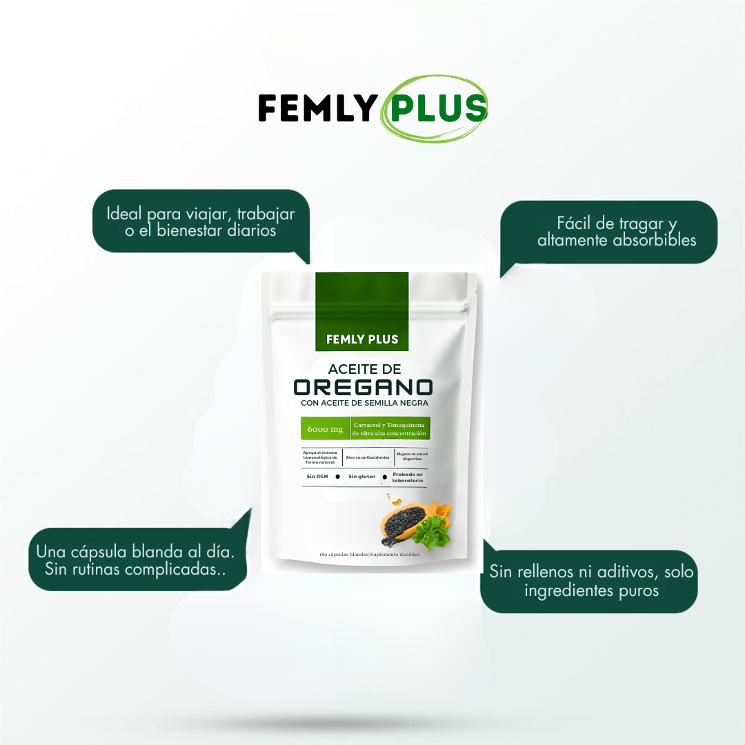 A diferencia de muchos suplementos diluidos, nuestras cápsulas están formuladas con extractos concentrados de orégano y semilla negra, ricos en carvacrol y timoquinona.